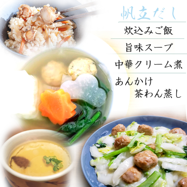 帆立の風味が豊かなので、シンプルなお料理でこそよりお楽しみいただけます。